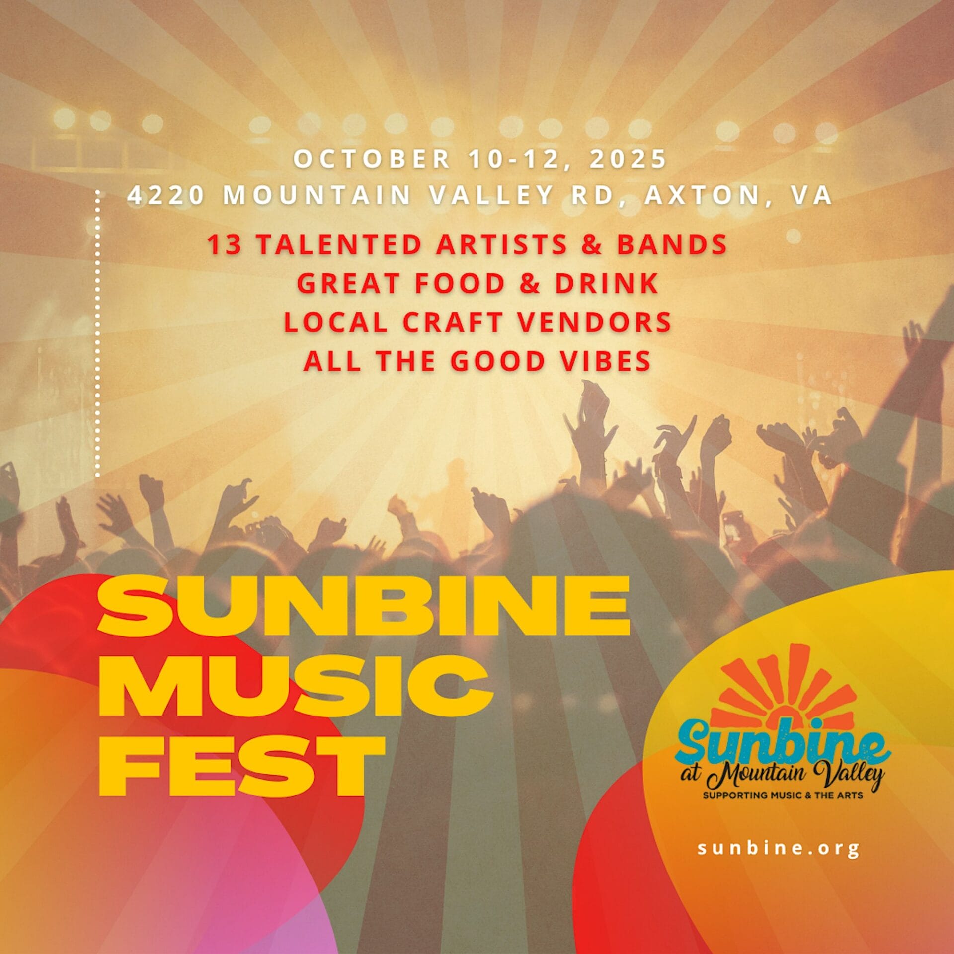 Get ready for 3 days of unforgettable music, community, and good vibes in the heart of Virginia’s stunning fall landscape! � Sunbine Music Festival 2025 – The Ultimate Fall Escape! � � October 10-12|� Sunbine at Mountain Valley, Axton, VA Get ready for 3 days of unforgettable music, community, and good vibes in the heart […]
