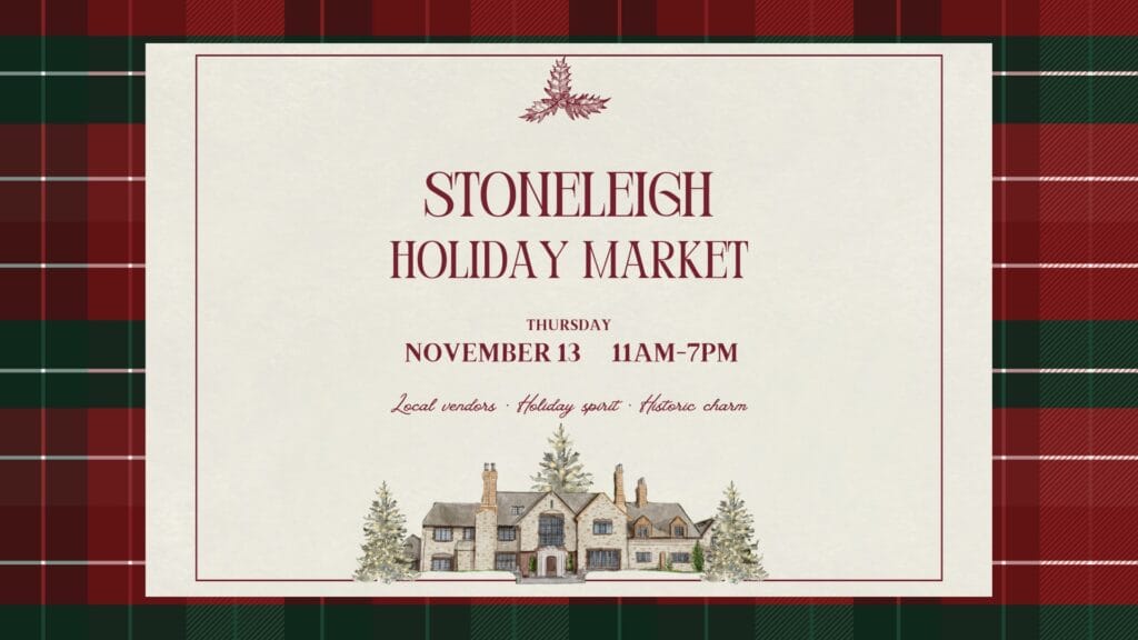 Step into the holiday season at the beautiful Stoneleigh Estate during the Stoneleigh Holiday Market! From 11 AM to 7 PM on November 13, explore a festive marketplace featuring local vendors and artisans offering unique gifts, handcrafted goods, boutique fashion, and holiday décor. Enjoy seasonal treats, warm drinks, and the cozy charm of this historic estate, all set to the sounds and sights of the season. Whether you’re shopping for loved ones or simply soaking in the holiday spirit, this is the perfect way to support local and experience the magic of Stoneleigh in its most festive form.