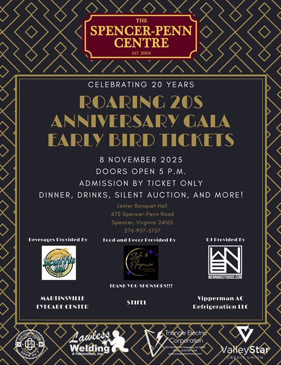 Help Spencer-Penn celebrate 20 years of nonprofit work at our first ever Gala! Dress in your 20s best and go back in time with us in the 1927 Lester Banquet Hall. Tickets go on sale August 1st! Doors open at 5 p.m. with dinner served at 6 p.m.