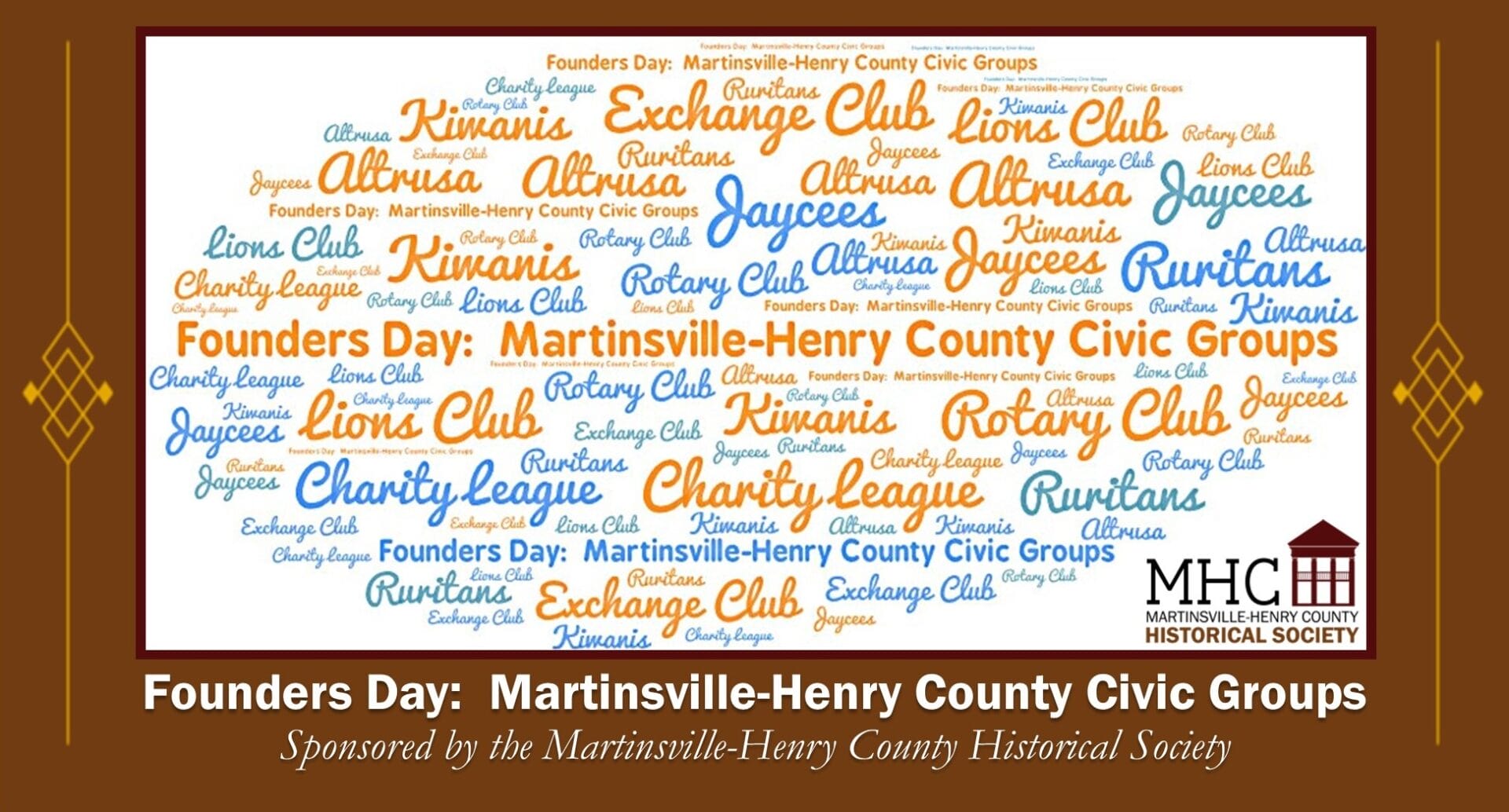 The Martinsville-Henry County Historical Society will celebrate civic groups at Founders Day on Sunday, January 19, 2024, 3:00 P. M., at the Historic Henry County Courthouse.