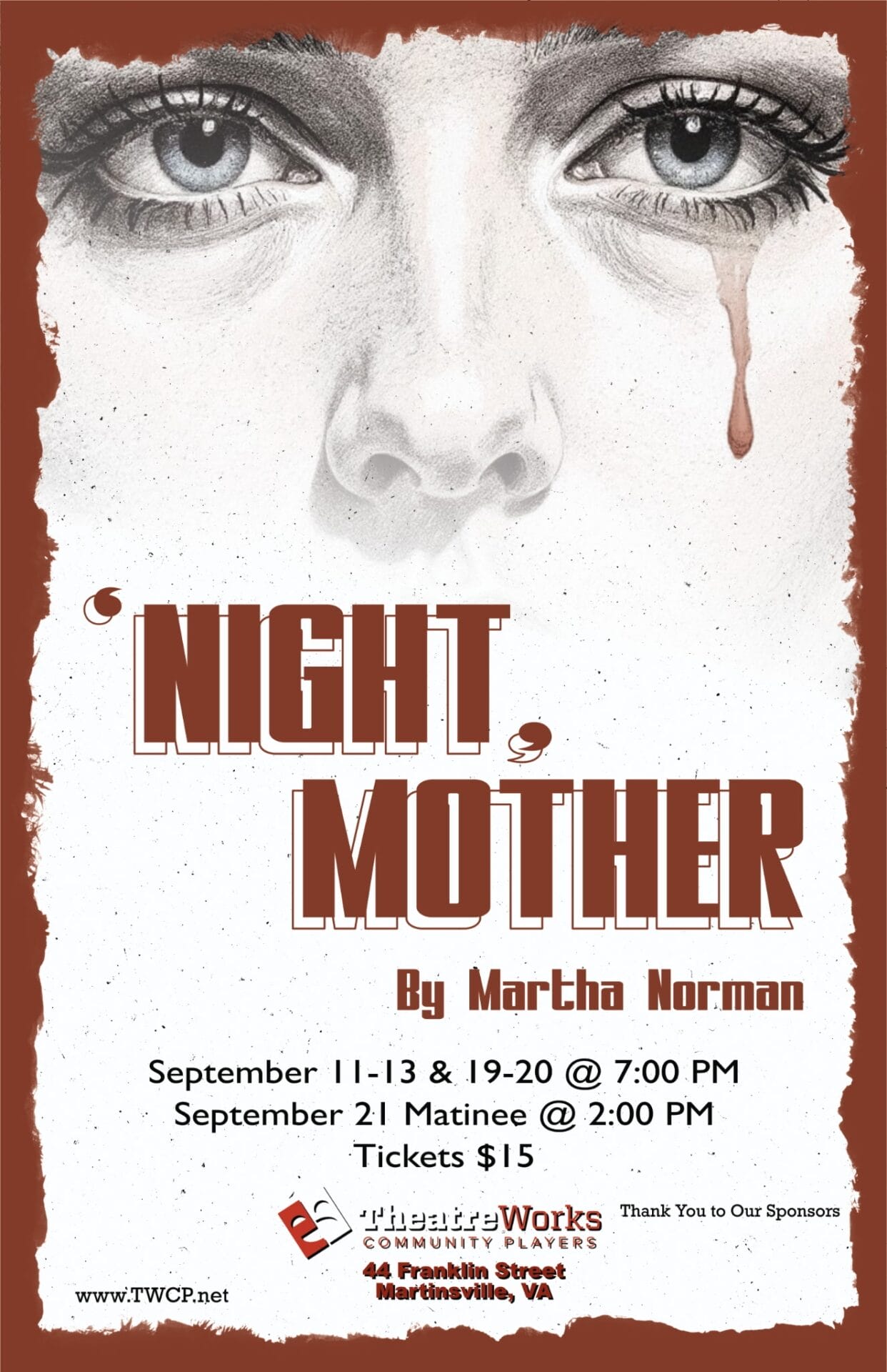 TheatreWorks Community Players present ‘night, Mother, the Pulitzer Prize-winning play by Marsha Norman. This powerful drama follows a mother and daughter through an emotional evening that confronts mental health, family truths, and the complexities of their relationship.
