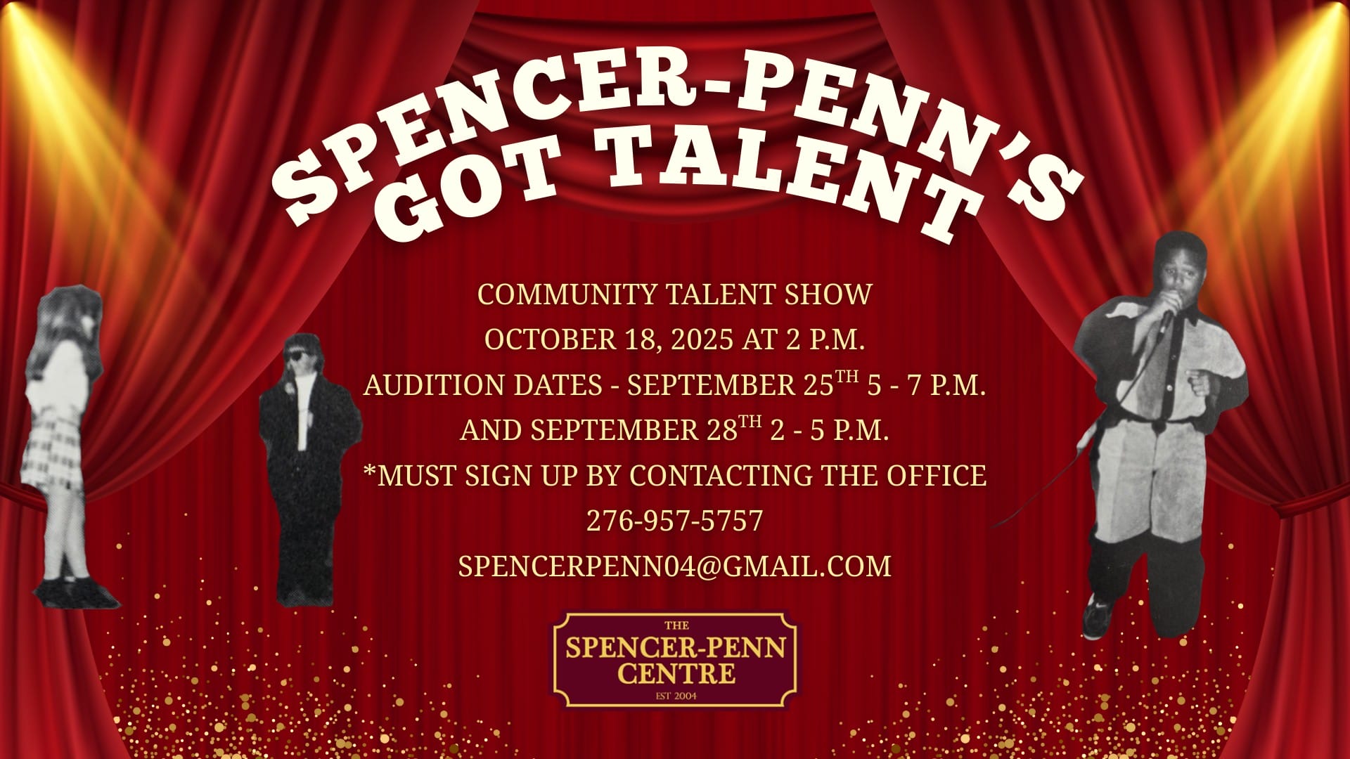 All performers must sign up through the Spencer-Penn office for an audition time to share what they plan to do on the stage and present their music. Audition dates include Thursday, September September 25th from 5 to 7 p.m. and Sunday, September 28th from 2 to 5 p.m. Office hours are Monday, Tuesday, and Thursday from 8:30 a.m. to 5 p.m. All talents and performances must be family friendly.