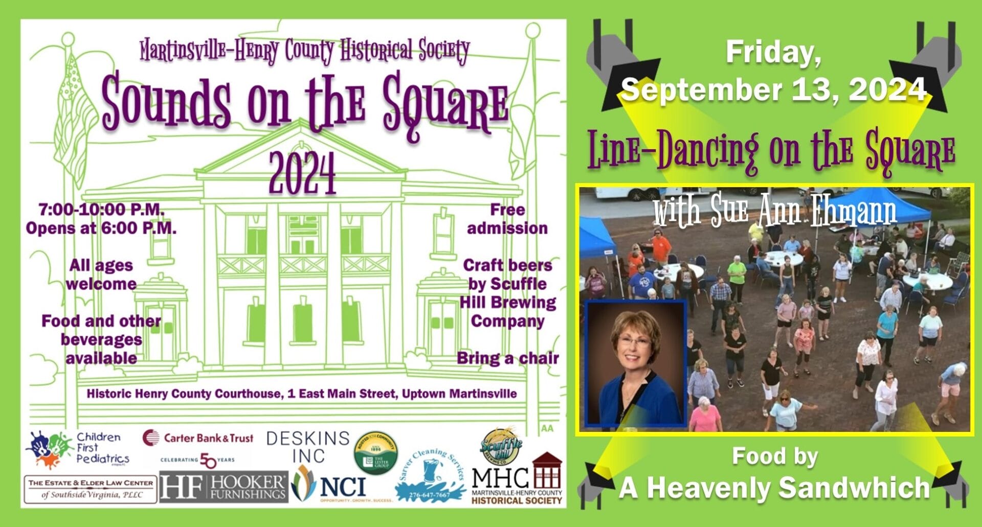 Coordinated by the Martinsville-Henry County Historical Society, Sounds on the Square is sponsored by Carter Bank & Trust, Children First Pediatrics, Deskins, Inc., The Estate & Elder Law Center of Southside Virginia, Hooker Furnishings, The Lester Group, New College Institute, and Sarver Cleaning Services.