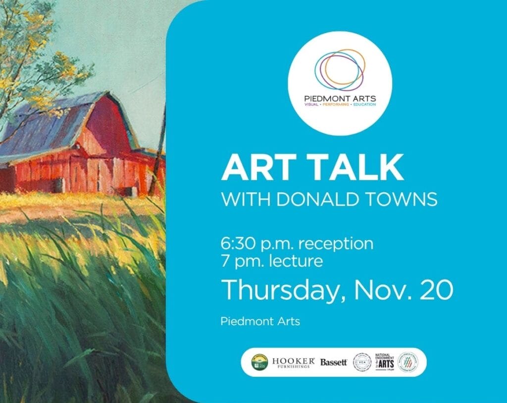 Join artist Donald Towns for a discussion of his work on Thursday, Nov. 20, at Piedmont Arts. A reception will be held at 6:30 p.m. The talk will begin at 7 p.m. in the galleries.